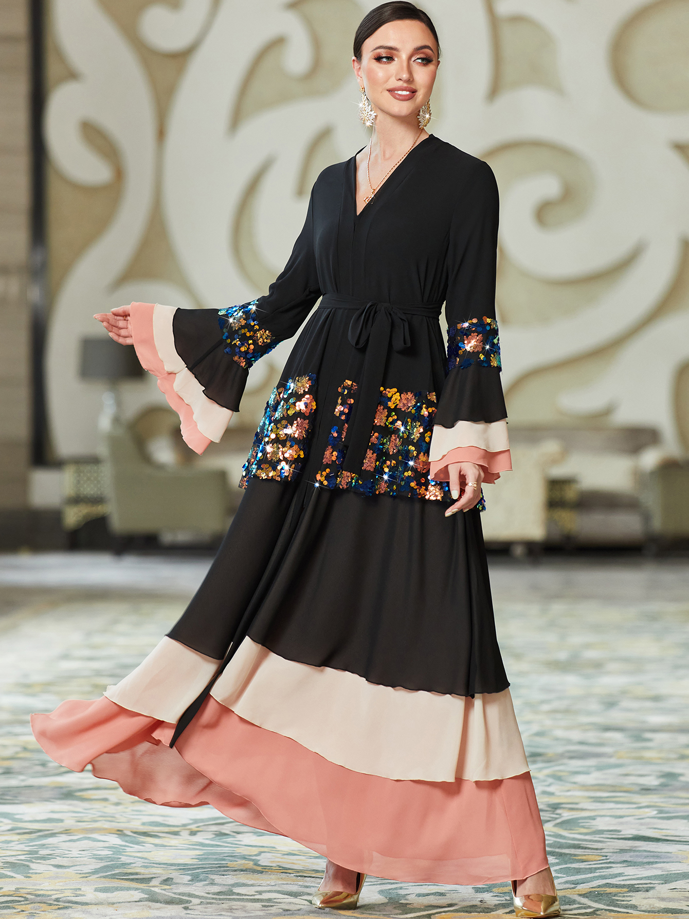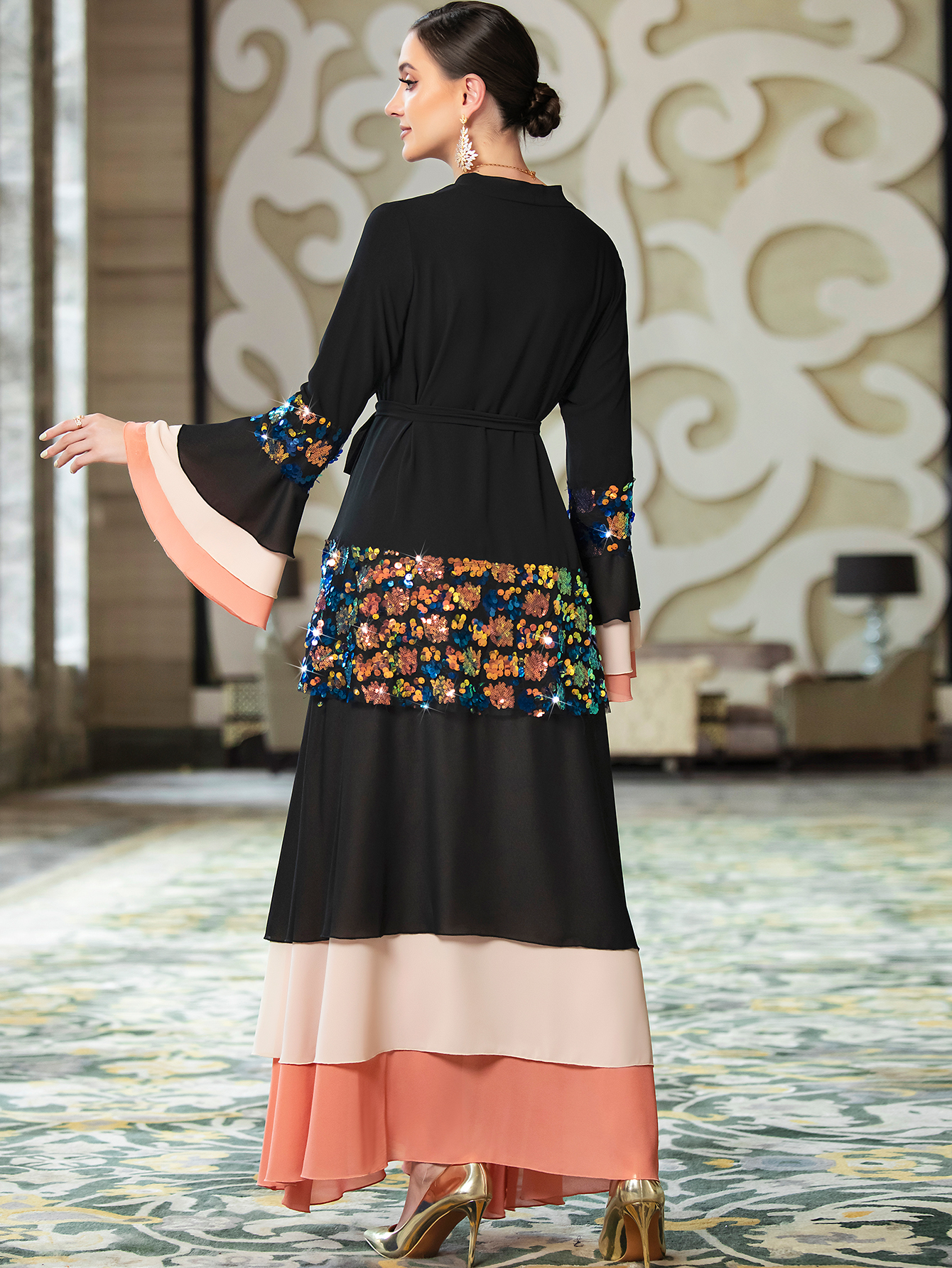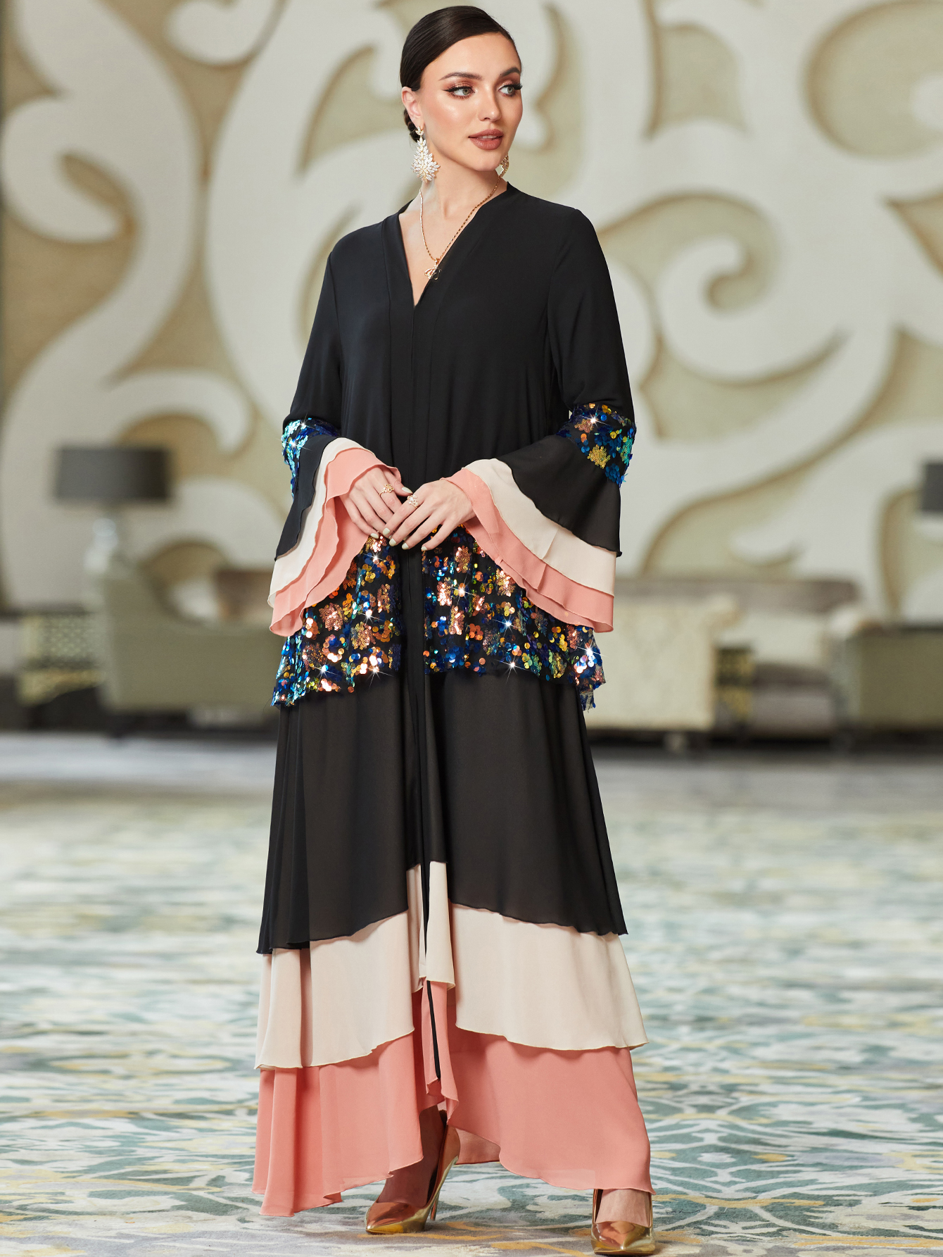 EMBELLISHED TIERED ABAYA